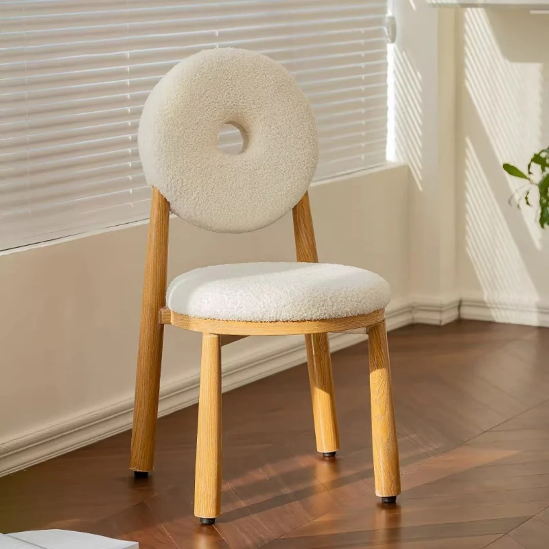 White Donut Chair – Bouclé with Wood Legs